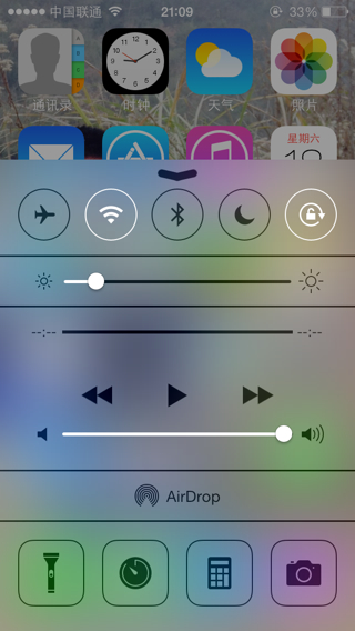 进入控制中心(按住屏幕底部向上移动手指打开控制中心;通过屏幕上的iphone辅助按钮打开控制中心)